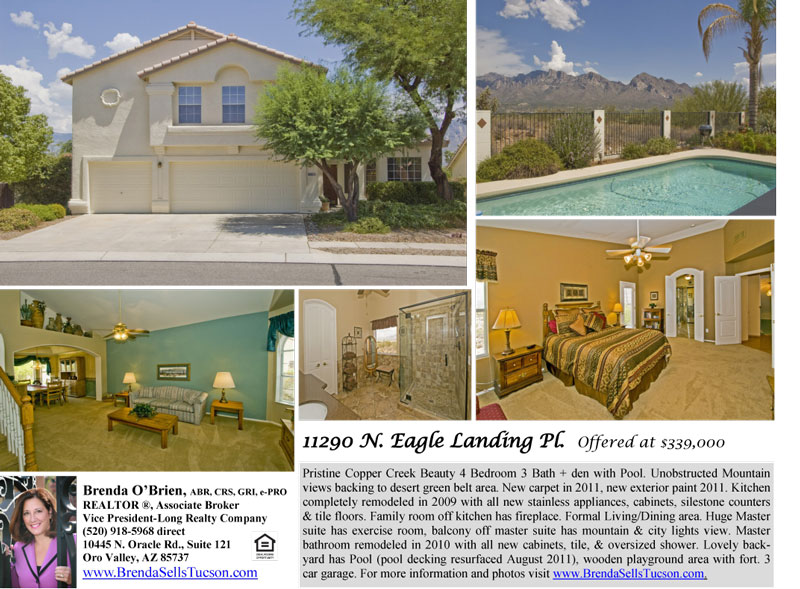 11290 N Eagle Landing Pl is sited in Copper Creek and has Unobstructed Mountain views backing to a desert green belt area.