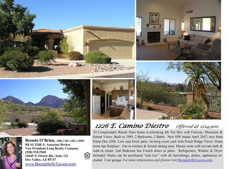 1226 E Camino Diestro: This El Conquistador Resort Patio home sits on an elevated lot overlooking 4th Tee Box with Fairway, Mountain & Sunset Views.