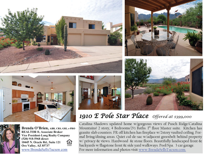 1910 Pole Star is sited on a Premium View Lot in Catalina Shadows with gorgeous views of Pusch Ridge & the Catalina Mountains!
