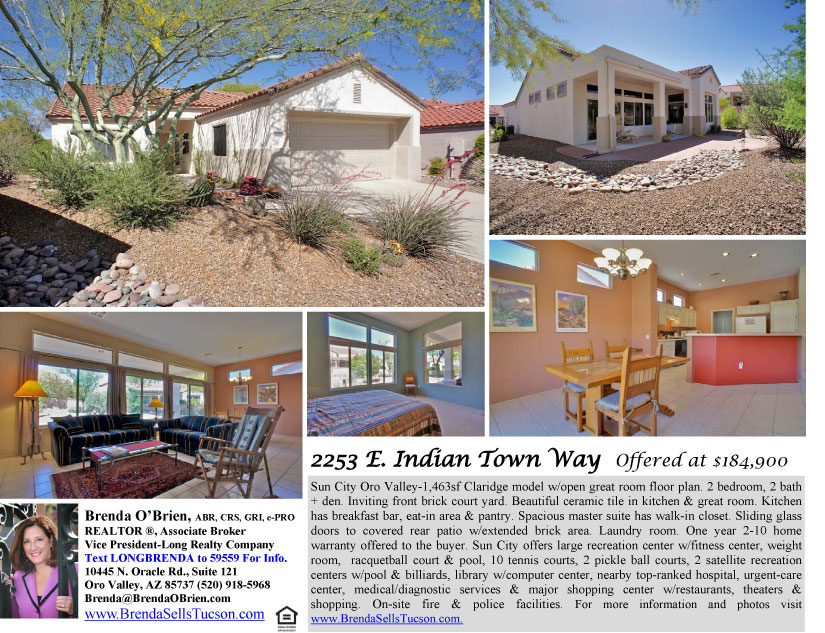 2253 E Indian Town Way is sited in Sun City Oro Valley in Northwest Tucson. This home sits on a nice lot with a courtyard entry.
