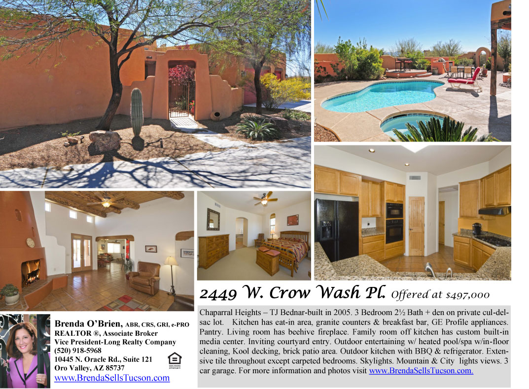 2449 W Crow Wash Pl is sited in Chaparral Heights in Northwest Tucson. If you're looking for a Santa Fe Style Home in Tucson, this TJ Bednar beauty was built in 2005 and sits on private 1 acre cul-del-sac lot.