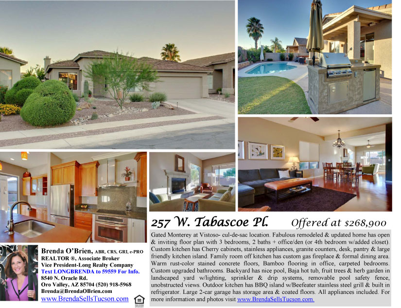 257 Tabasco Place is a Fabulous remodeled and updated Monterey at Vistoso home which is sited on a cul-de-sac lot.