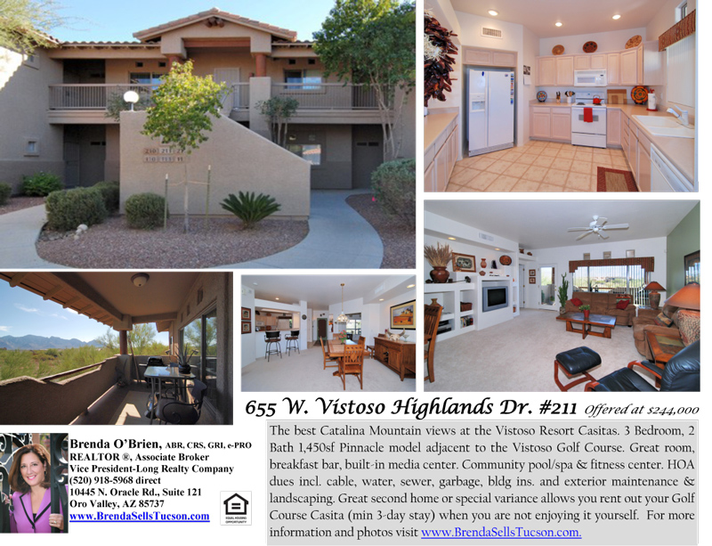 655 W. Vistoso Highlands Unit 211- $244,000 Pictures Map and Description