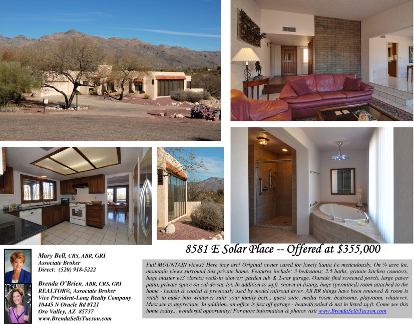 8581 E Solar Pl is sited in Northeast Tucson, has a large 3/4 Acre lot and Mountain Views..