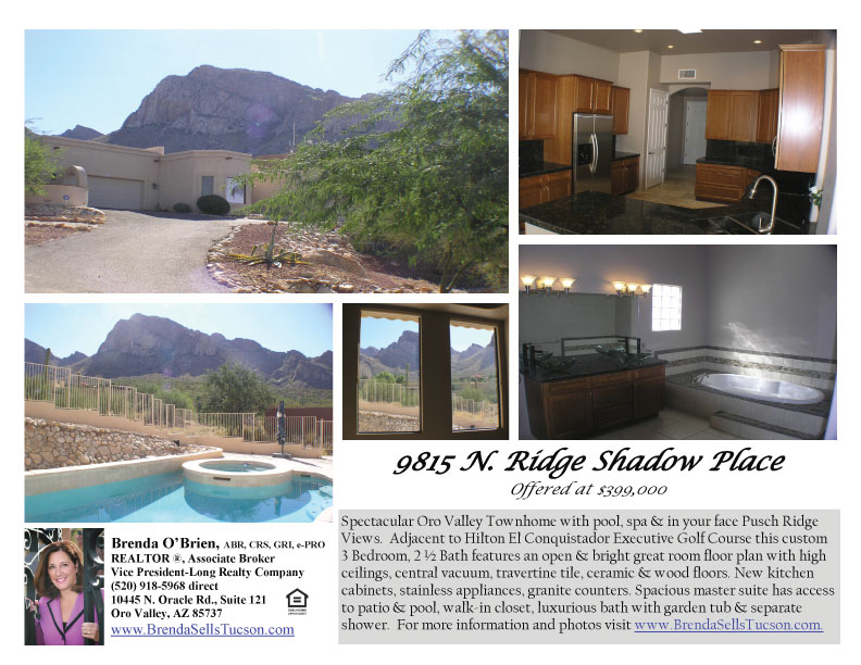 This Spectacular home on Ridge Shadow is one of our Oro Valley Townhomes and has it's own Pool and Spa.