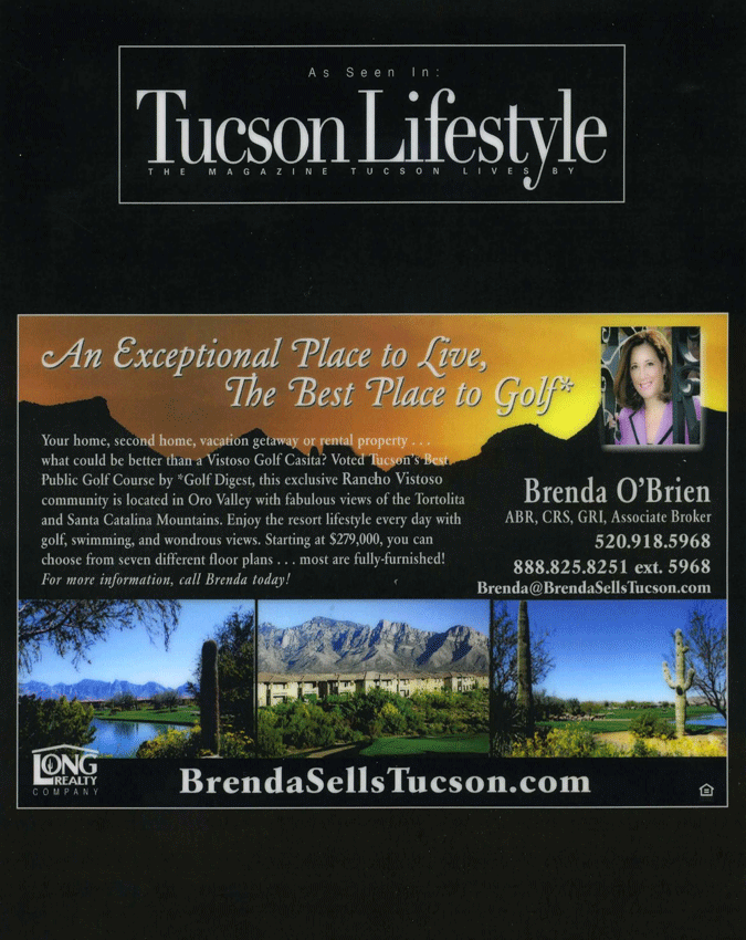 Tucson Home Marketing is one of Brenda O'Brien's greatest strengths. She has spent years developing and honing her skills for Marketing your Tucson Home.